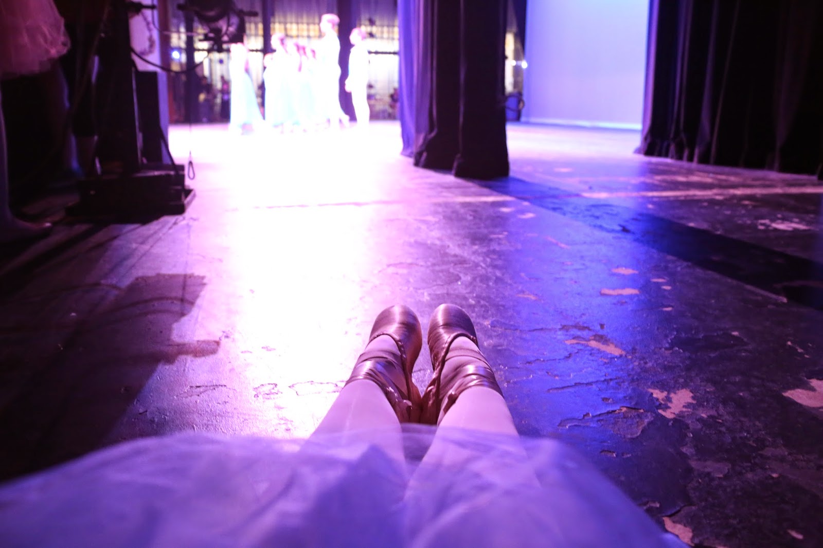 So I went back in the auditorium with my camera to watch before we went on. I didn’t want to be late since it had been a while since I danced Crows. I wanted to be ready. Adrienne helped me go over which direction this part was since I had done both and wanted to make sure I got it right.