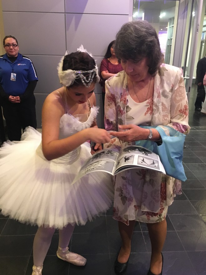 Act II ended, and we went into intermission. I asked Mrs Jane if it’s okay if I put my swan costume back on after to go out and greet everyone, and she said she didn’t see why not. I don’t have a head piece, as I share with Hannah, but that’s okay!