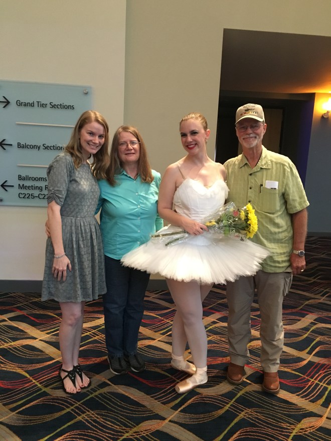 I got to see my family afterwards. They got me flowers and bought me a shirt and program. Dad said he would have taken out the swan with the cross bow if it were him. Hehehe, I love him. I was so glad to have them there today.