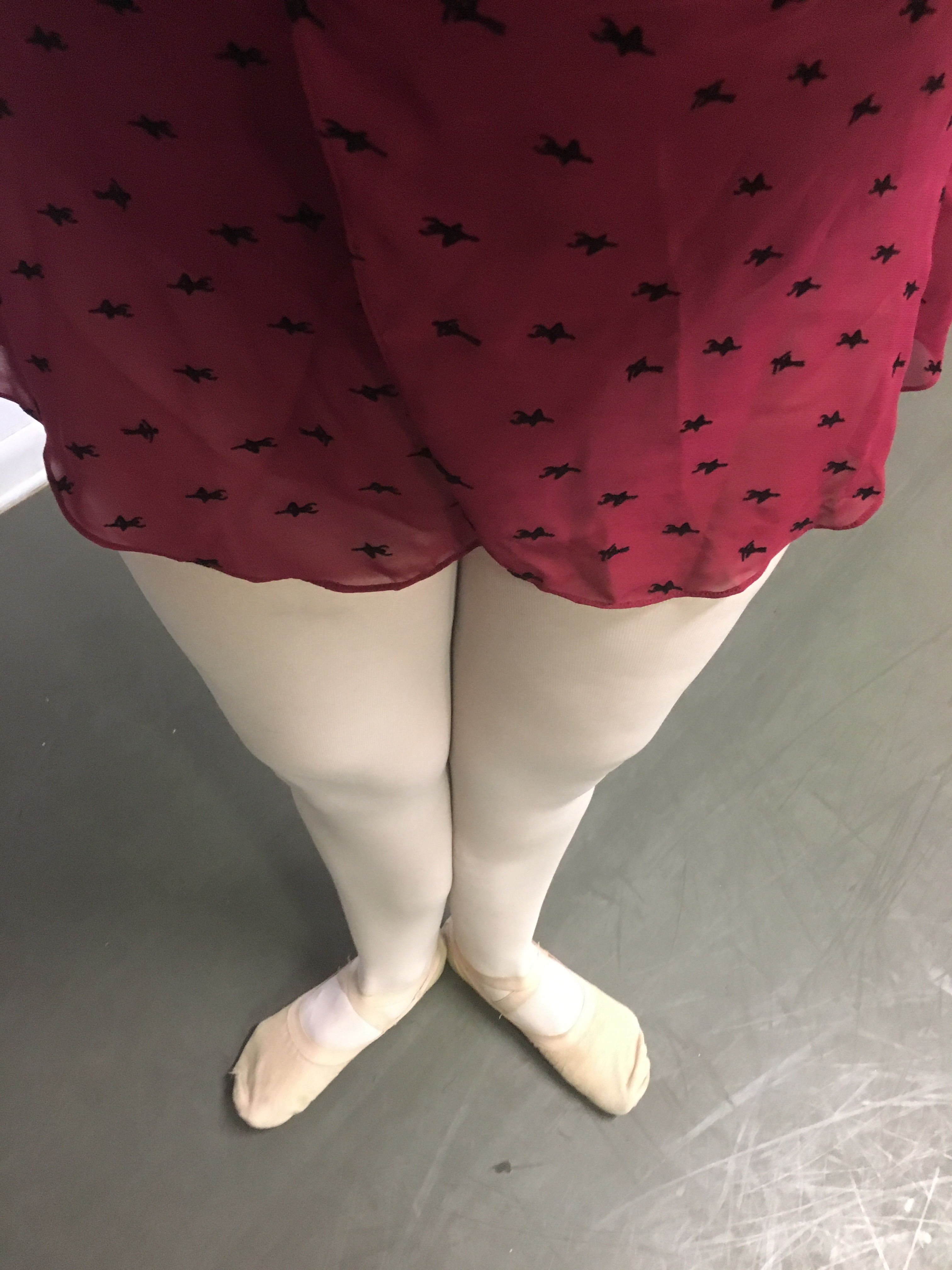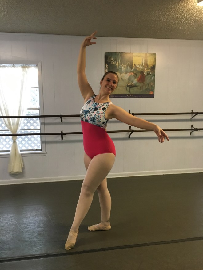 Realizing I didn’t have any other leotard with me, and I couldn’t just not go to class since I also had to teach, I struggled through sounds of snapping strings to work it over my hips and wiggle my arms in. No one would know if I didn’t tell them, though it fit a little tight. I walked into class to many compliments, even from Ms. Munro, only letting on to a close few of the struggle I had and that I may end up having to give the leotard away.