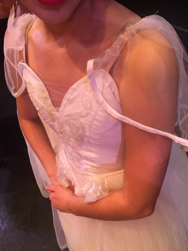 The first happened in our Weiss Frauen dance. There’s this part where we kneel in lines, reminiscent of Swan Lake, while Snow White and her mother, the Weiss Queen, dance. I was in the back corner, essentially, giving me a great perspective of what was happening, and it hit me. Here I was, on this stage, in this costume. I’m doing the thing that years ago I only dreamt of. The thing I longed to do for so much of my life. The thing that scared me to my core but I wanted so much I faced that fear anyway. The thing I began merely 5.5 years ago, and here I am. I’m on stage, in pointe shoes, surrounded by some of my very favorite people in the entire world. It hit me like a wave crashing over me, saturating every inch of my being. I was so very much there in that moment; more than I probably have ever been anywhere in my entire life.