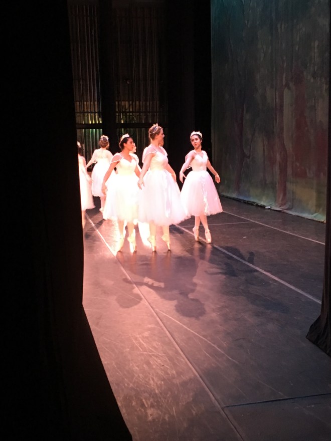 The second happened for hoffraulein beginning with the rehearsal I got to watch and continuing through to the performances. Realizing that I was that person I had just gotten to watch. That I was the one in the dress and shoes, actually able to do dance moves that I used to struggle with so much. I remembered my first pointe classes when 10 minutes felt like agony and my friend McKenna was there telling me if I kept working hard she promised it would get easier. I remembered my first performance en pointe on this very stage and the struggle it was which is laughable now. I remembered how far I’d come in such a short amount of time, and the people who helped me get there. I thought of some of those very people being in the audience, seeing me dance. I realized that I was there, doing the thing I once only dreamed and hoped I’d be able to one day do. Hoffraulein was the accomplishment to my ballet dreams–to be in the most advanced ballet dance. To belong there, and not just be there out of pity.
