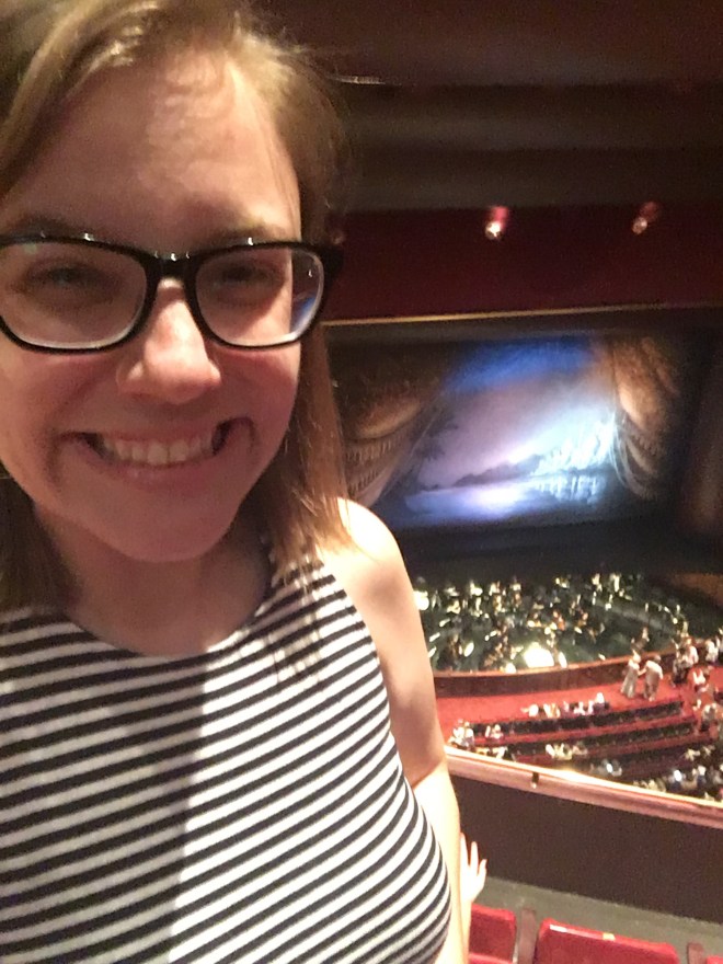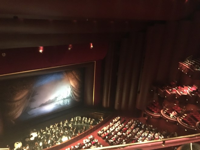 We took the elevator to our seats, which Ms Munro pointed out the elevators actually worked here. She has stories of having to take elevators to the stage and one getting stuck between floors while she was in it and she could hear her music playing, and another when all the floors were in German, so she couldn’t figure out which one meant “stage.” (Though now she can still tell you.)