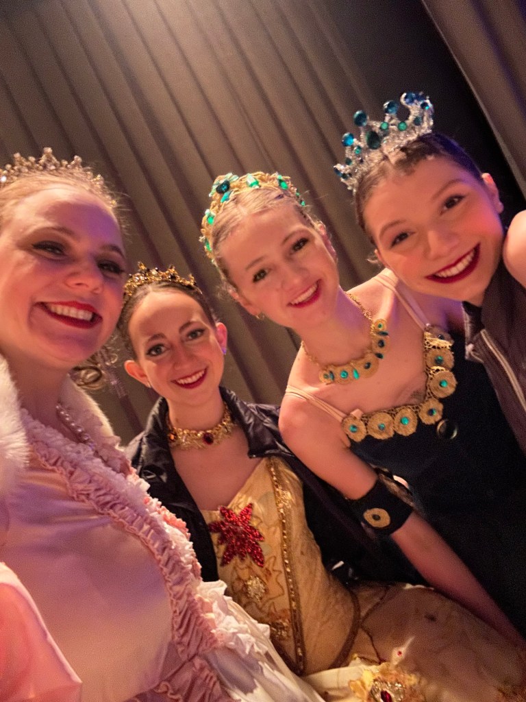 i’m also so grateful to have Elizabeth and Chrisi. Elizabeth was Odette and Chrisi was Odile on Sunday and for school show. Last time we did Swan Lake, Elizabeth was a huge support for me in my disappointment with it all. I ended up going in as a swan when someone got hurt and was so thrilled that I got to dance a scene with Elizabeth. Now that I was the Queen, it was so rewarding having Elizabeth there to celebrate with me, knowing how much this full circle meant for me. I cherish her. I was also so thrilled because Chrisi came to us after I had to stop dancing, and I was so sad to not have had a scene with her properly. With this show, we had an entire act—and one that played to both of our strengths. We both had the same Theater Director, the legend Charlotte Brown, and for both of us to get to flex our acting chops in the same scene was so rewarding. I was so grateful to have this completion of dancing in scenes with my friends, an opportunity I may not have had otherwise.