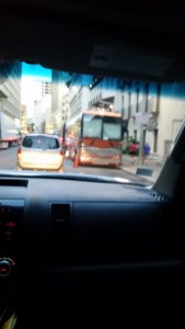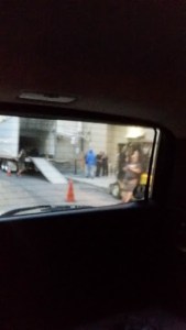 We were walking to the parking garage and were trying to find stairs that weren’t congested. In doing so, we ended up on the side of the building we saw the buses.