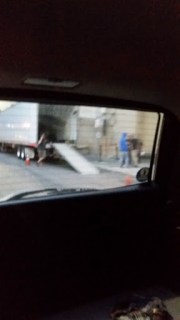We lingered a few minutes and one of the workers there told us, “It’ll be about an hour before they can come out. If you want to wait, please do so past the prop boxes so we can get them loaded.” So we did just that.