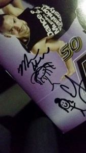 Virgil signed the program and Alexia drew herself wonderfully as she signed. (#meyeronfire) They were really fun and really nice. We talked with them and laughed and really enjoyed ourselves. (I wrote about Alexia above. She’s great. Supah fab. And from Utah, but we claim her here in Texas for sure. But Utah is close to Idaho and that’s where Emilee [my name twin] lives so we like it there to. I haven’t been to Utah yet, but it’s on my list.) Alexia seems like a really well rounded dancer. I’m hoping to get to go back and watch this season and see the full picture of how they got here from where they began with their SYTYCD story. Virgil was pretty great as well. Really funny. He was impressive to watch and thrived with anything given to him. He was another one of the really expressive ones that just seemed to stand out.